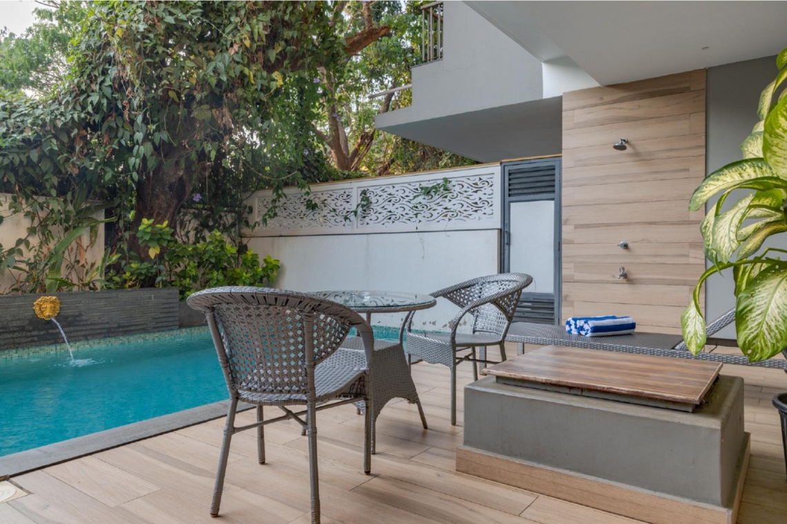 - Private Pool: Dive into your very own private pool and soak in the tropical charm of Goa. The pool area is surrounded by lush greenery, offering you a secluded oasis for relaxation and fun.